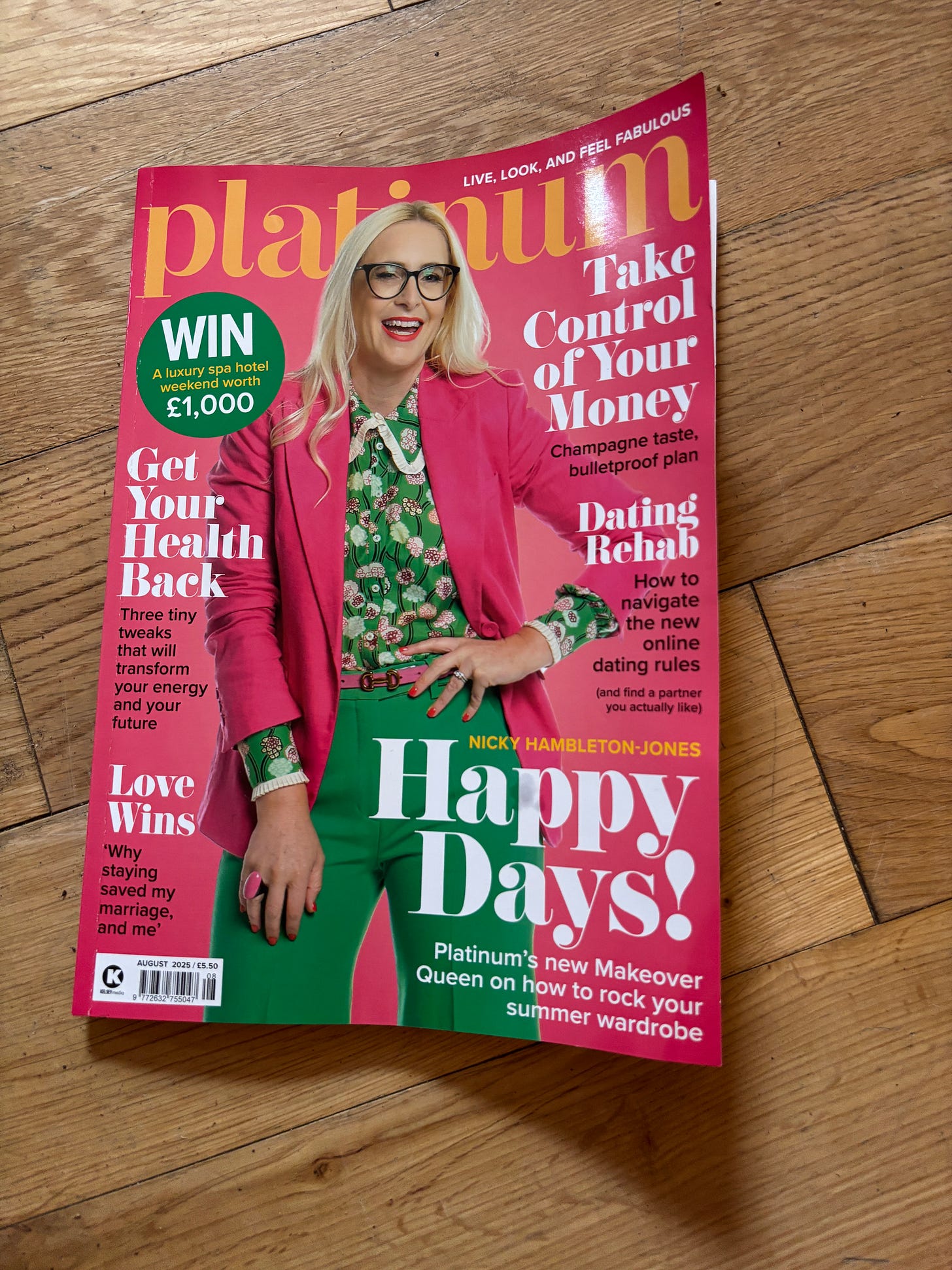 Platinum is a monthly lifestyle magazine aimed at women over 50. It’s for dynamic, wise, funny, warm-hearted, curious women who want to live well now. It’s not about trying to be younger. It’s about feeling good in your own skin, stepping into your power, and shaping a life you love — whether you’re in silver sparkles or a boiler suit.